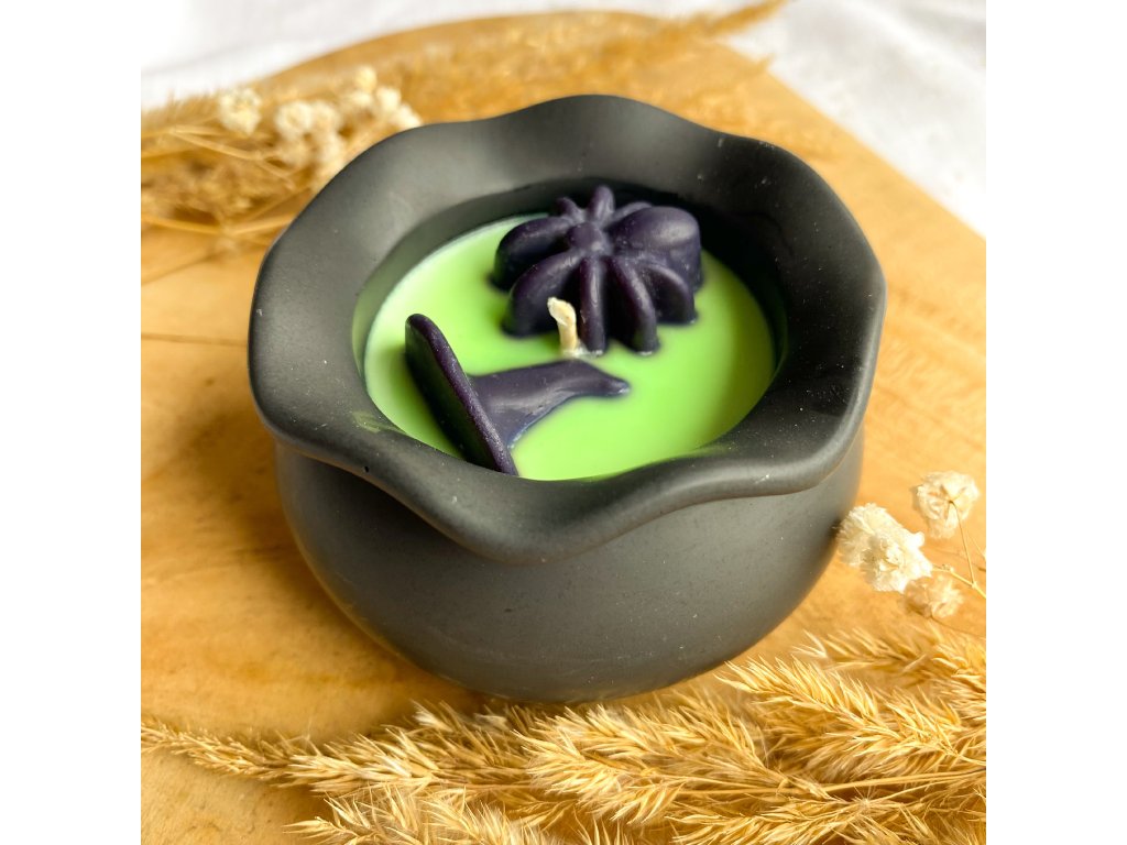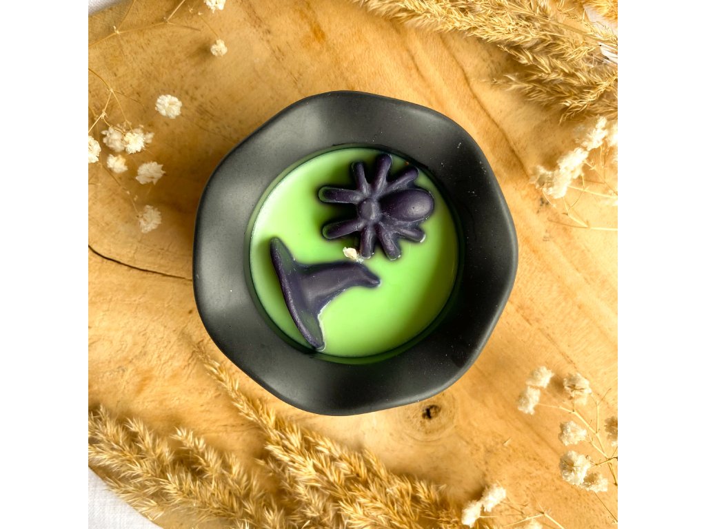 Složení: nádoba z jesmonitu, sójový vosk Kerasoy Container 4130, sójový vosk Pillar 4120, 1x bavlněný knot s plíškem, vůně: jablíčko+skořice, barvy na svíčky: zelená, černá
